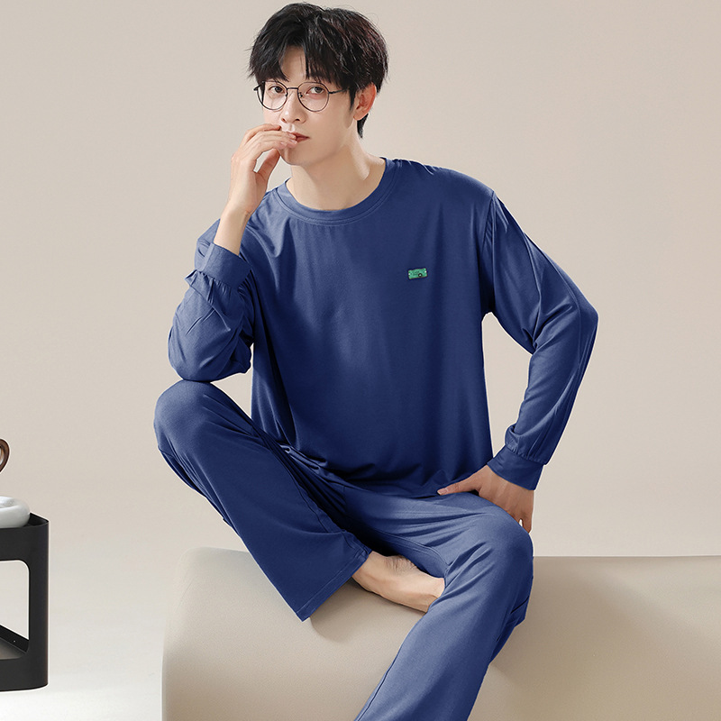 モーデル綿夏パジャマ男性春秋長袖カジュアルホームウェア薄いサイズのゆったりとしたヘッドセット