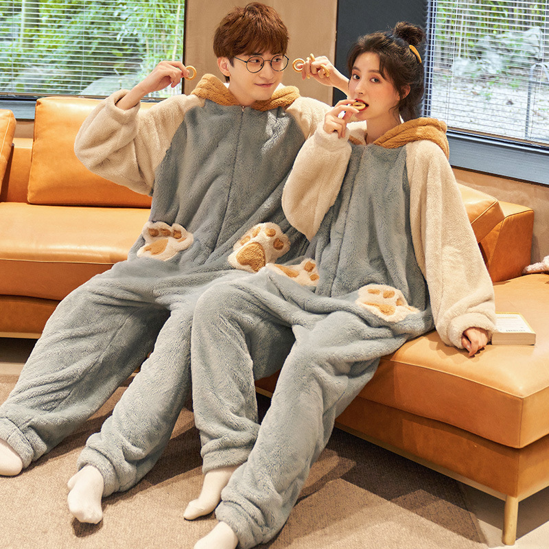 ベルベットカップルの新しいワンピースパジャマ女性秋冬モデル厚パイル男性冬ホームウェア