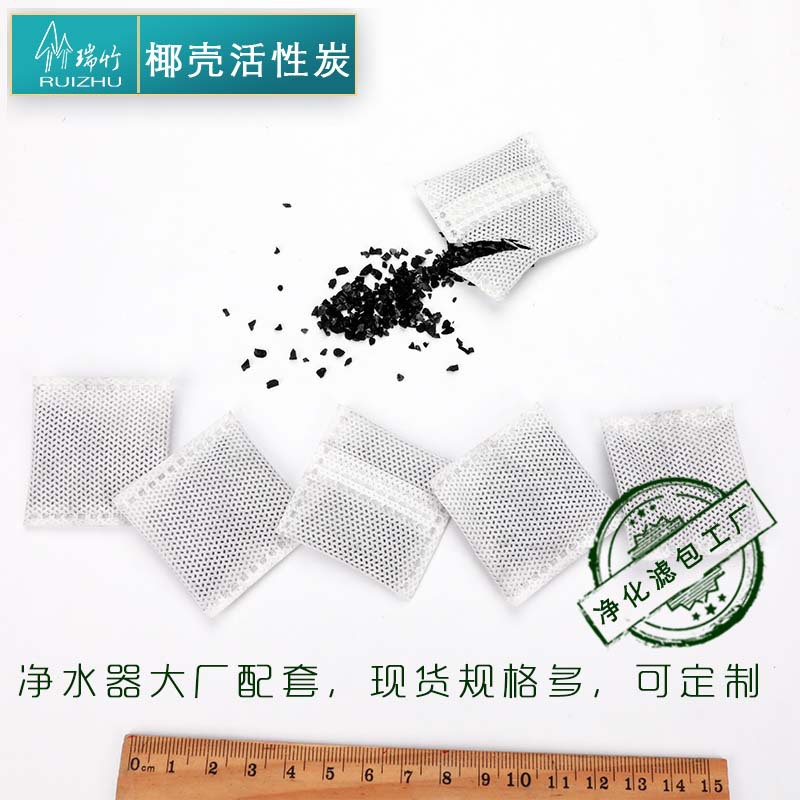 浄水器4*4ペット浄水器エレメント水洗いココナツ殻活性炭除味小包活性炭バッグ専門工場