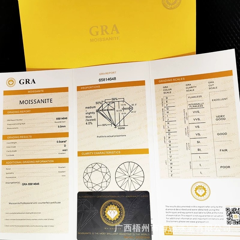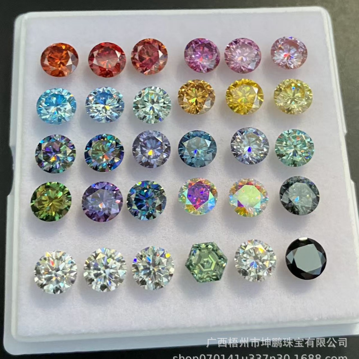 跨境专供 彩色莫桑钻圆形裸石戒面 GRA证书可过钻笔 七彩莫桑石