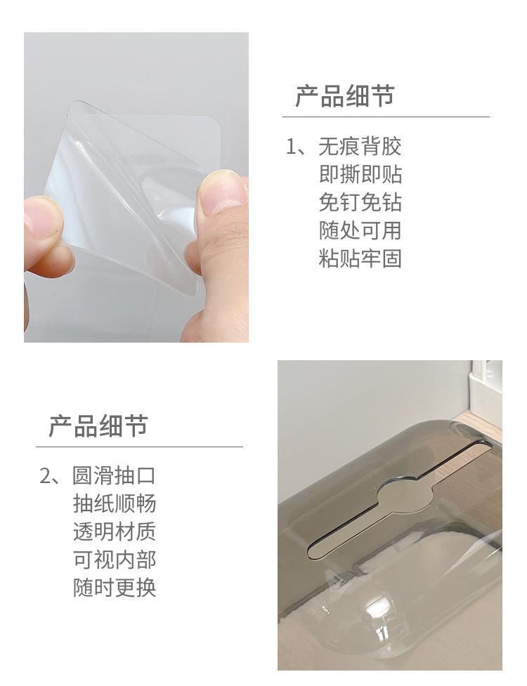 浴室透明壁挂抽纸盒 墙壁无痕贴桌面放置两用抽纸盒