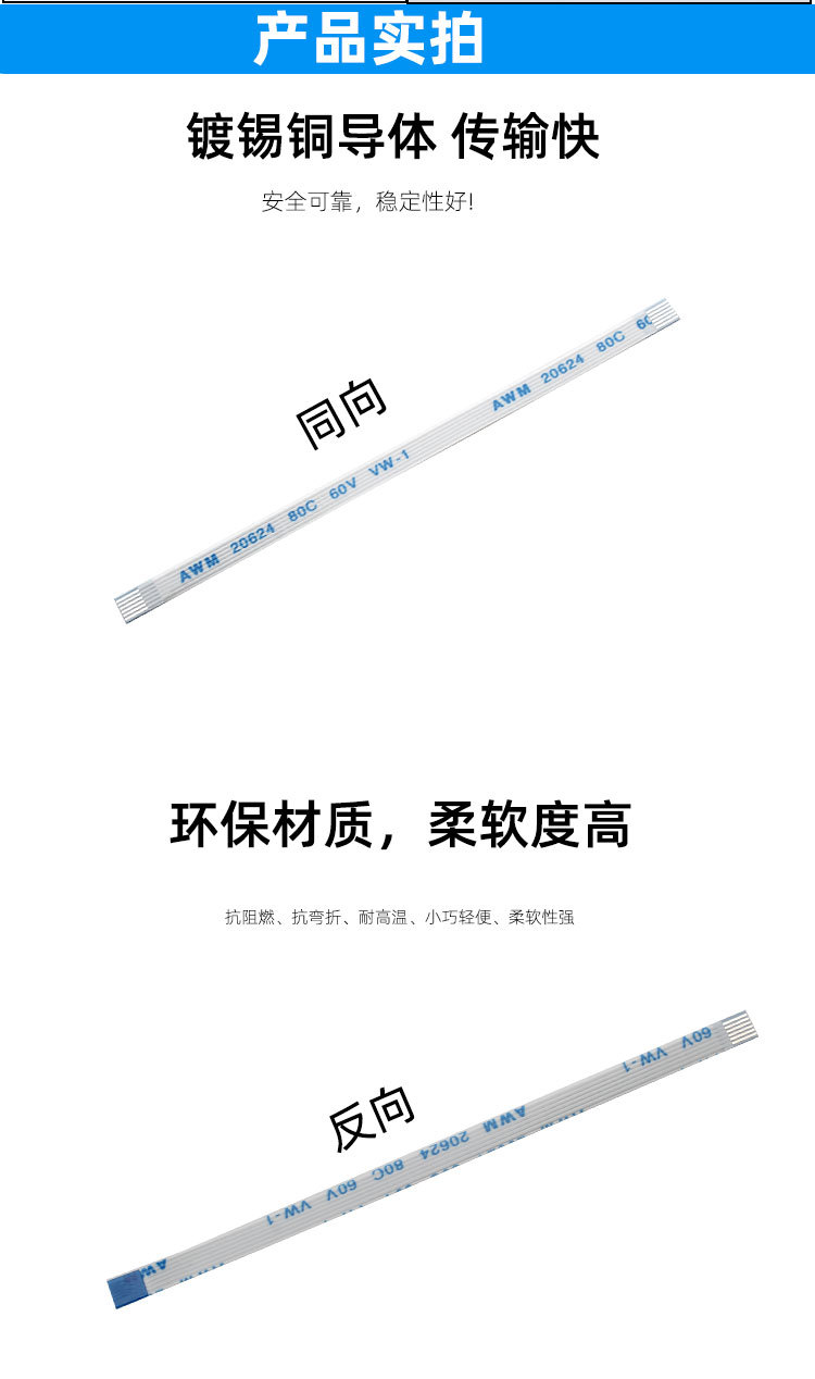 ffc/fpcフレキシブルフラットケーブル1.0ピッチ100mm同方向反方向フレキシブルフラットディスプレイ接続ケーブル