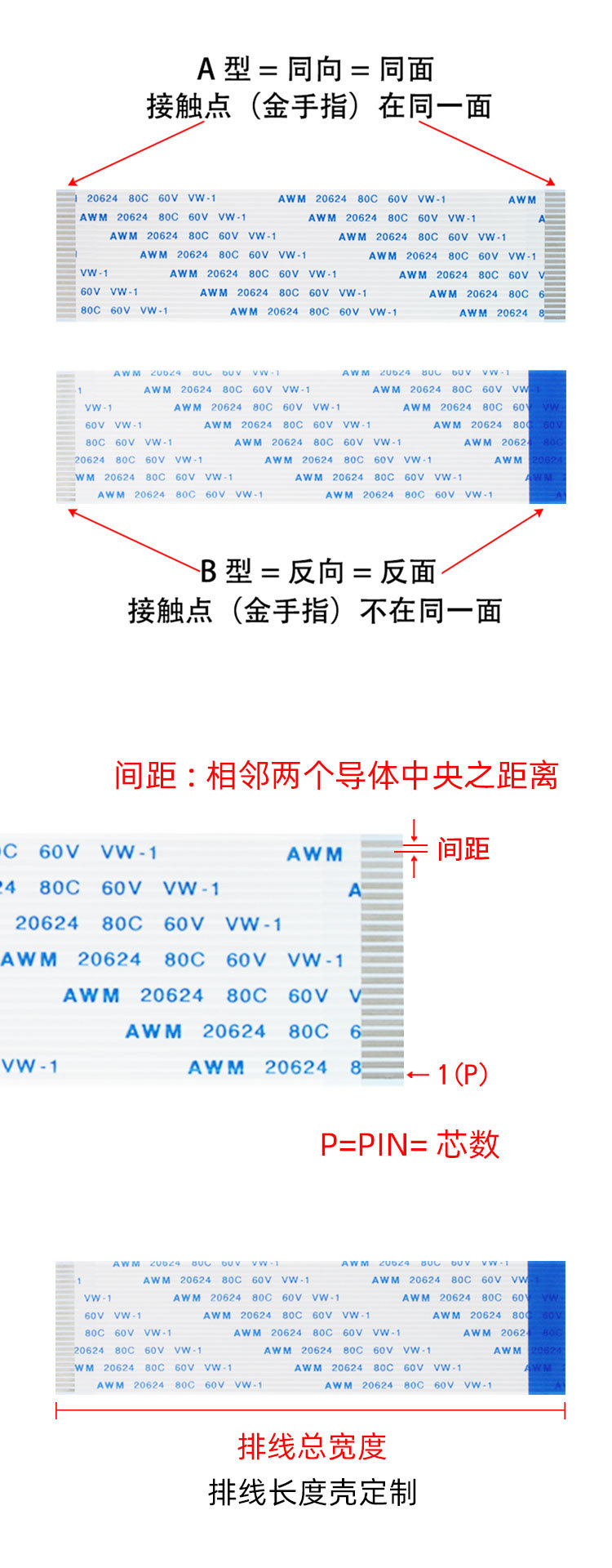 ffc/fpc フラットフレキシブルケーブル 0.5 ピッチ 4-80P50mmAWM20624 80C 60V VW-1 ケーブル
