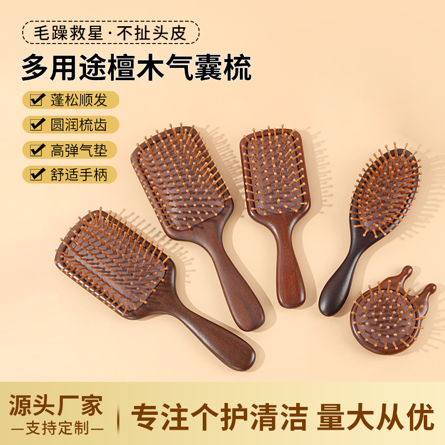 低价专供楠竹气垫按摩梳子便携小随身顺发防静电气囊梳护理直发梳