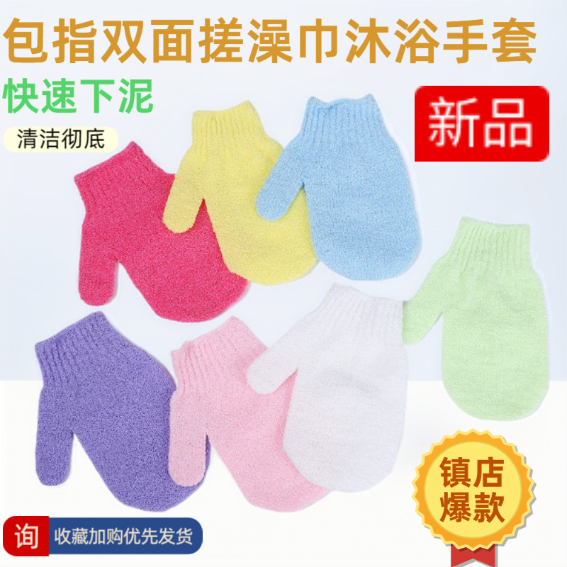 新しいお風呂の手袋は式の泡立てネットの石鹸の袋をつけて、お風呂のタオルを拭いて手袋を浴びます。