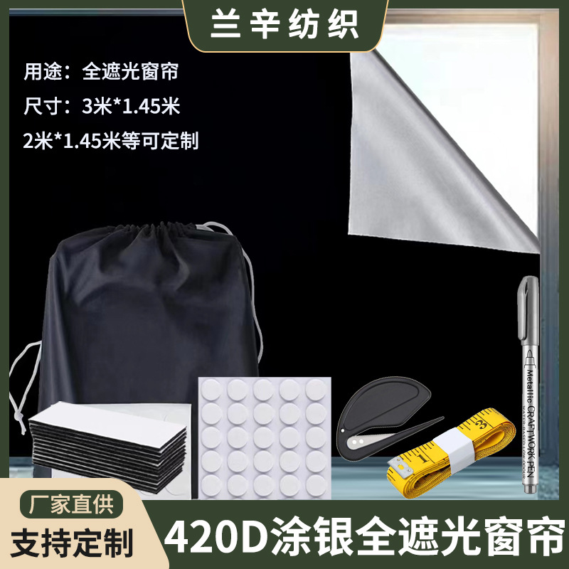 ポータブル遮光カーテン旅行用遮光カーテン自由にカットできる遮光カーテン遮光銀コーティング布3*1.45m