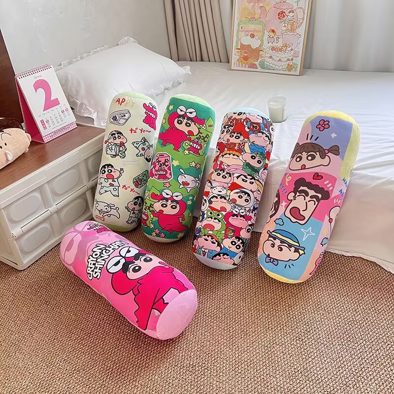 少女の心のかわいい漫画のしんちゃんの円柱は枕を抱いて家にいます。