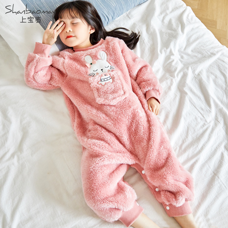 上宝麦秋冬子供パジャマ連体の女の子フランネルの長いぬいぐるみの赤ちゃんパジャマのサンゴの毛が暖かくて厚いです。