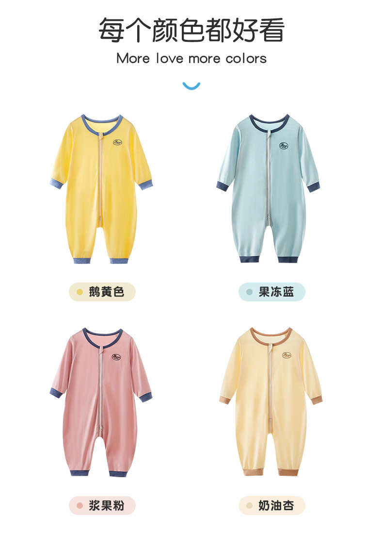 上宝麦春秋子供用ワンピースパジャマ、ジッパー付き純綿ソフト素材、男女兼用ベビー寝袋、ホームウェア、足こき防止