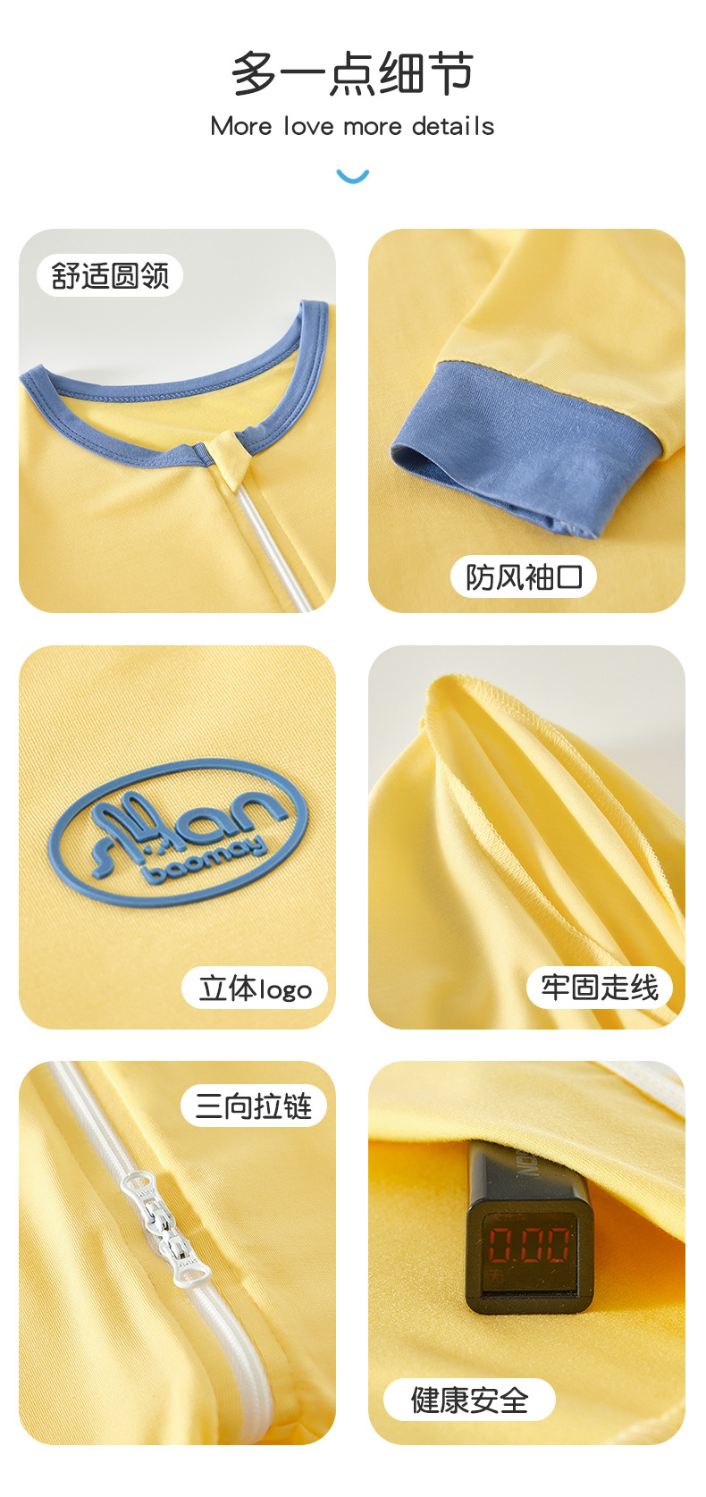 上宝麦子供連体パジャマジッパー寝袋蘭精モーデール赤ちゃん男女保護腹汗家服