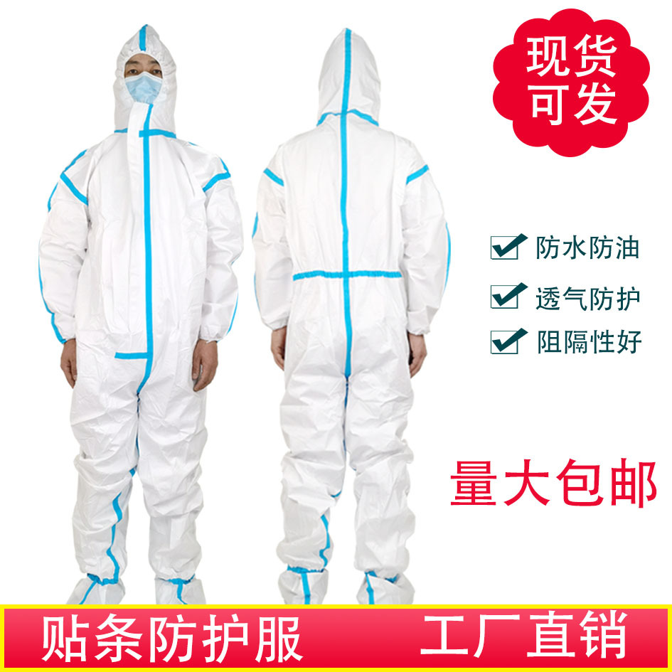 防護服使い捨て圧条厚手ワンピース隔離服防水防油防塵養殖防疫作業服