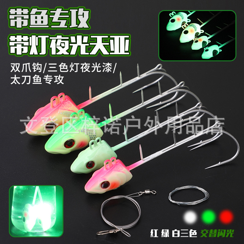 ライト付き天亜魚鱗、ライト付き強力夜光、帯魚、マグロ、鋼線前導餌針、太刀魚ハードベイト