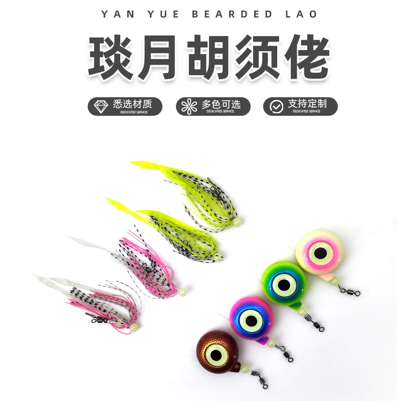 大きな目のヒゲを生やした炎月の魚、タチウオ、ルアー、鉄板、交換可能なフック、タイバラ、底面保護プレート