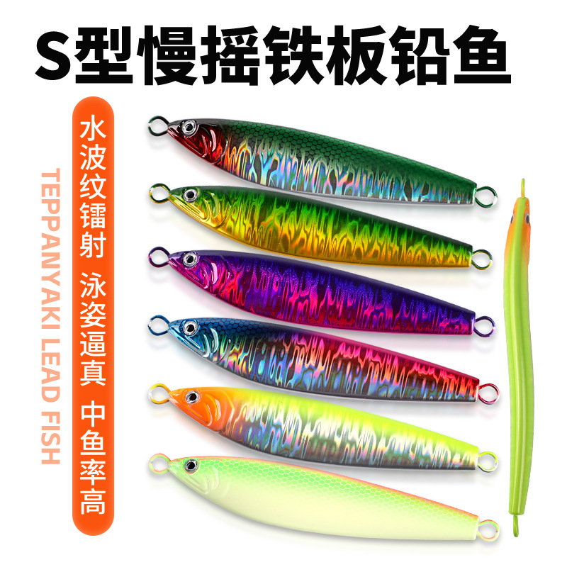 ルアー鉄板鉛魚、タラ板、S板、夜光金箔入り海釣り用レーザー加工サバ・バス用ルアー、バイオニックルアー