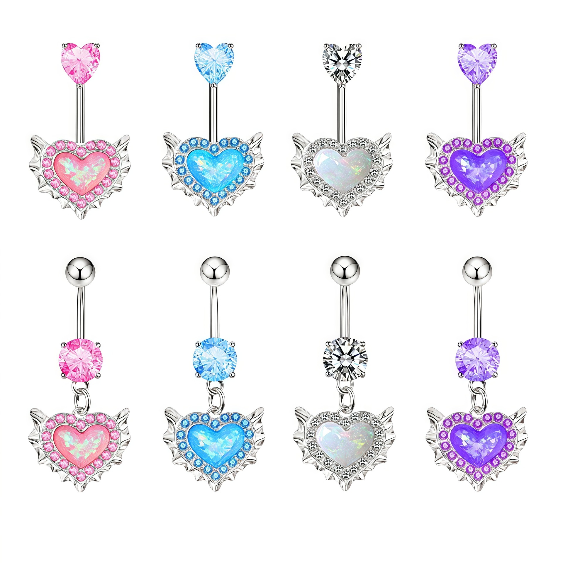 ヨーロッパとアメリカのハート型模造オパールダイヤモンドジルコンへそネイルボディピアスジュエリーピンクフラッシュへそリング卸売