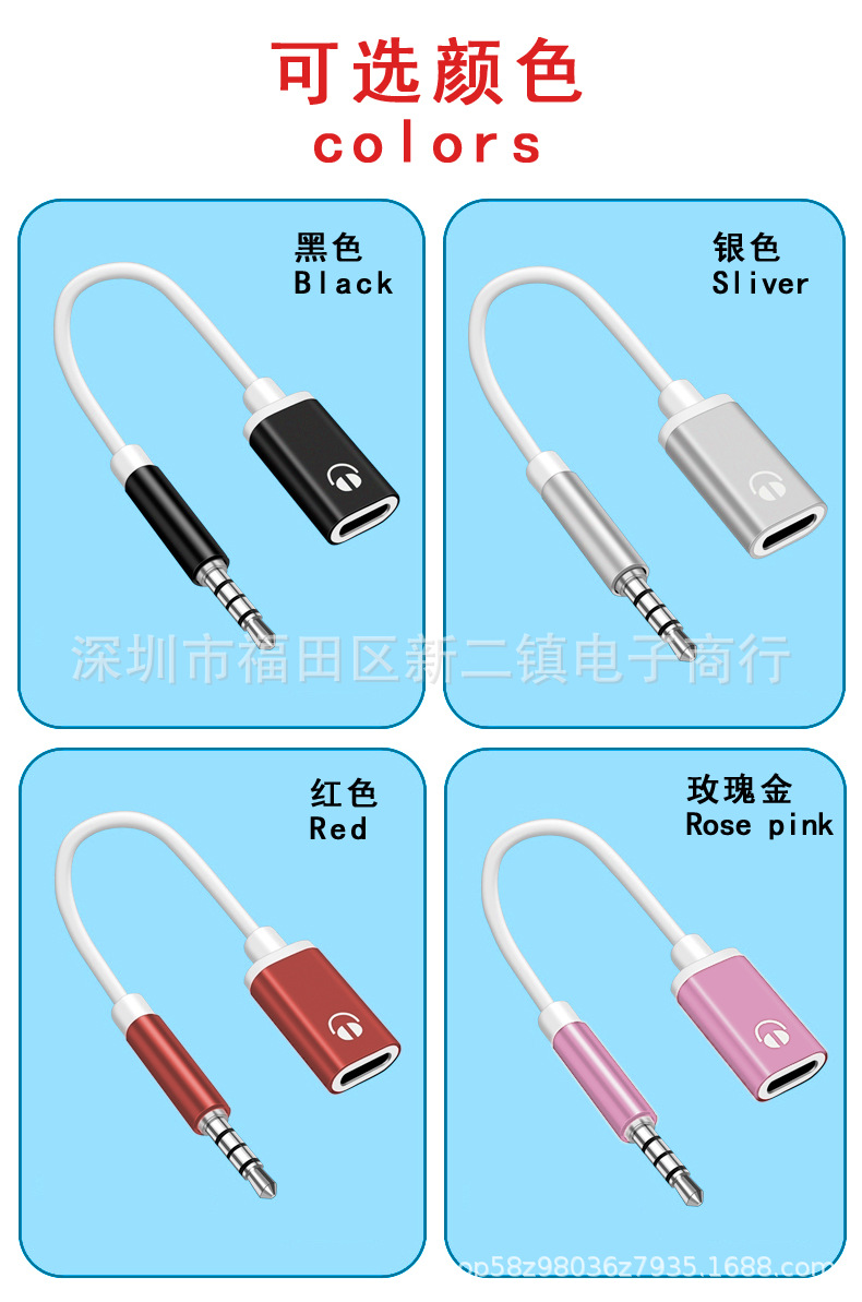 Type-cオーディオアダプタTYPE-C回転3.5イヤホン聴歌充電2 in 1 tpe中継ケーブル