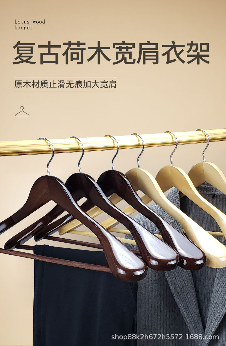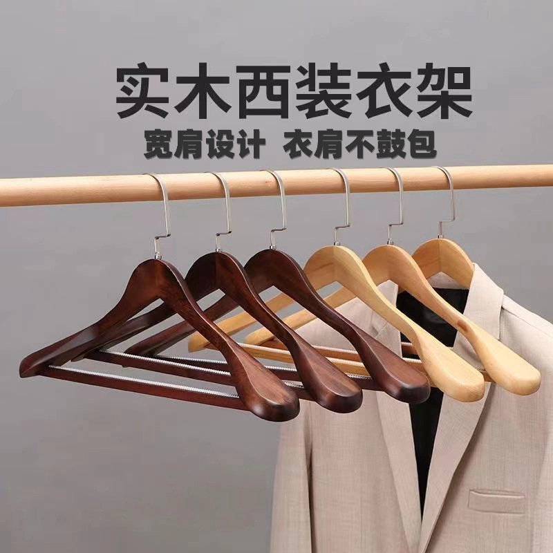 幅広無垢材ハンガー 大型メンズハンガー スーツ 大人用 跡がつかない 家庭用ハンガー 卸売 拡張型滑り止め