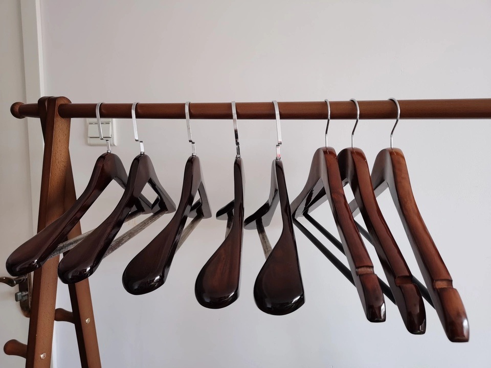 無垢材の洋服ハンガー、ホテル卸売、痕跡のない滑り止め、厚みのある盗難防止靴べら、靴ブラシ、コートハンガー、B&B洋服サポート