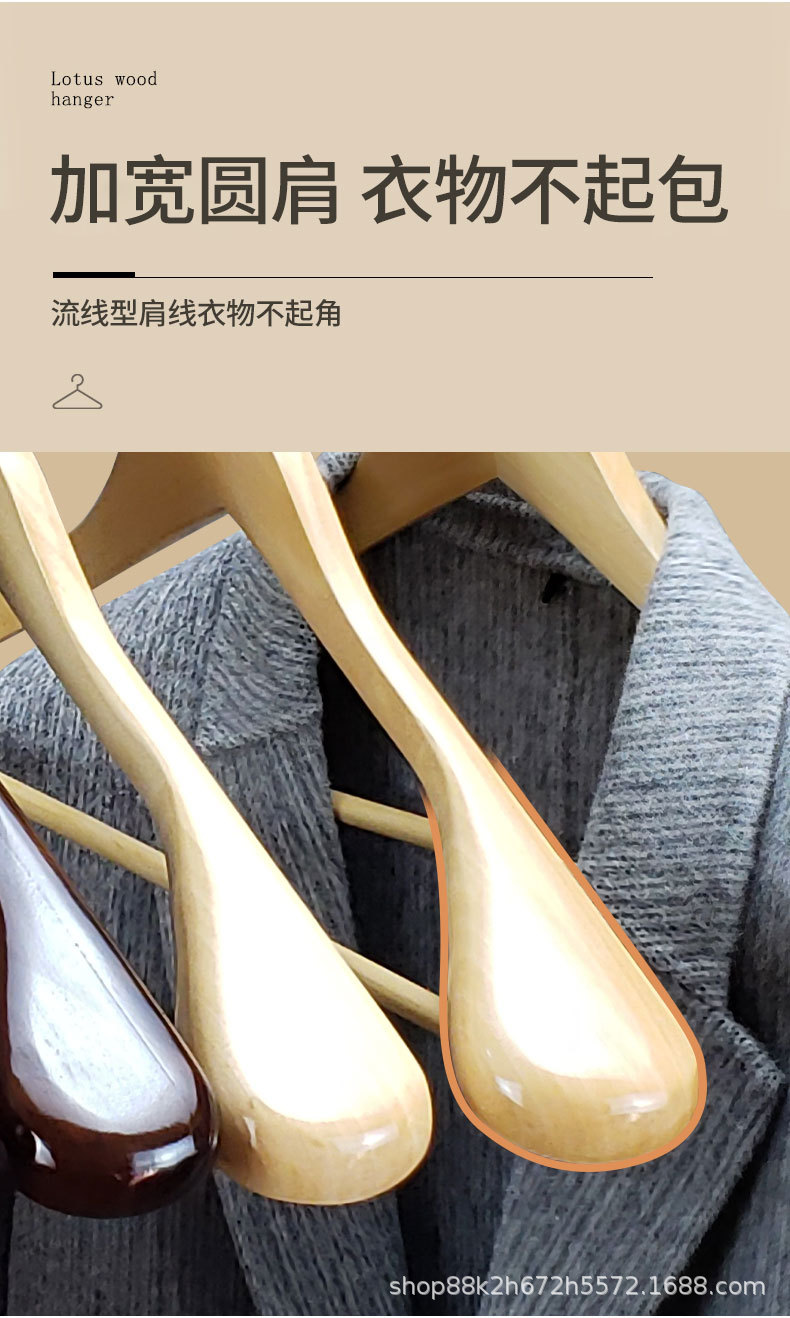 軽くて豪華な女性のハスの木の家庭用のハンガーの木製の広い肩の跡がない木の原木のスーツの洋服は服のハンガーを支えます。