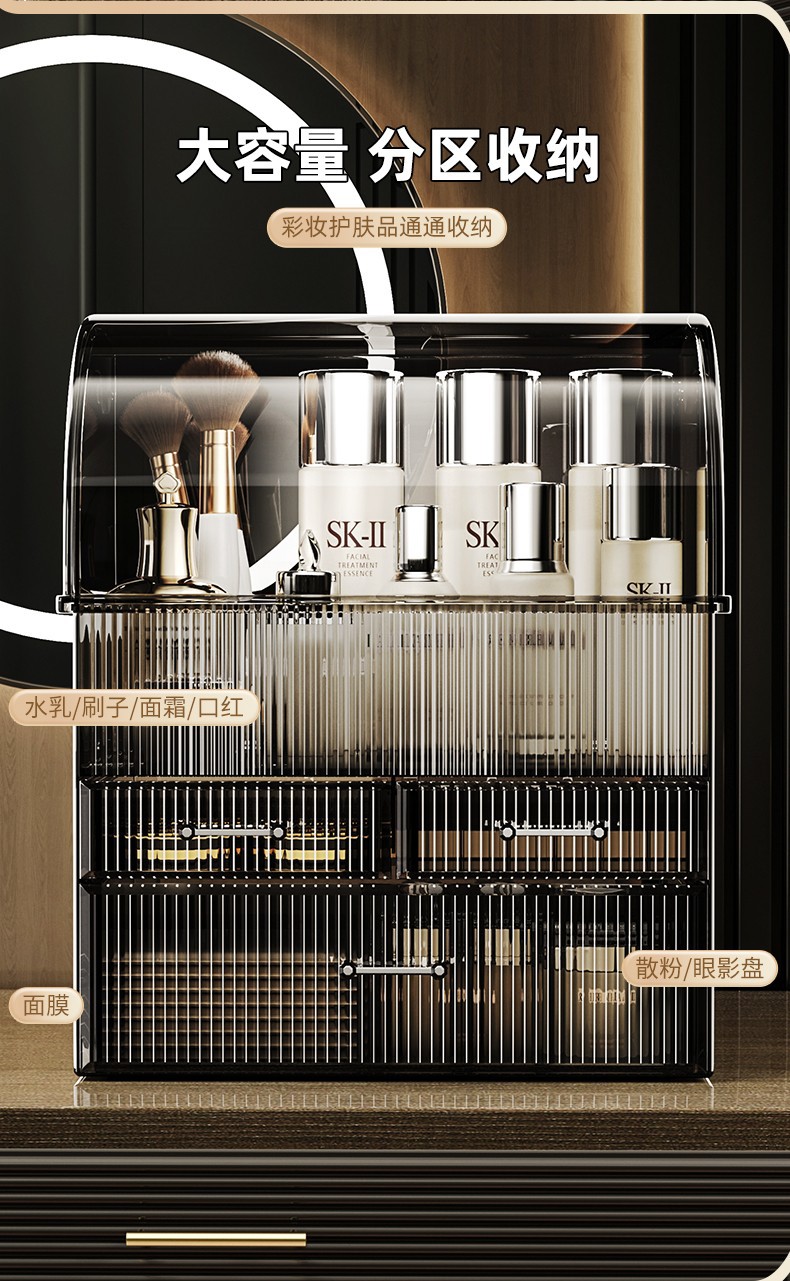 台面化妆品收纳盒桌面高级感大容量抽屉式带盖防尘梳妆台收纳神器