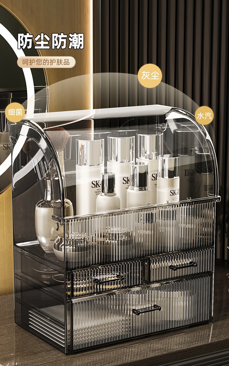 化粧品ボックス収納ボックスデスクトップ高級感家庭用透明防塵化粧台スキンケア用品引き出し棚