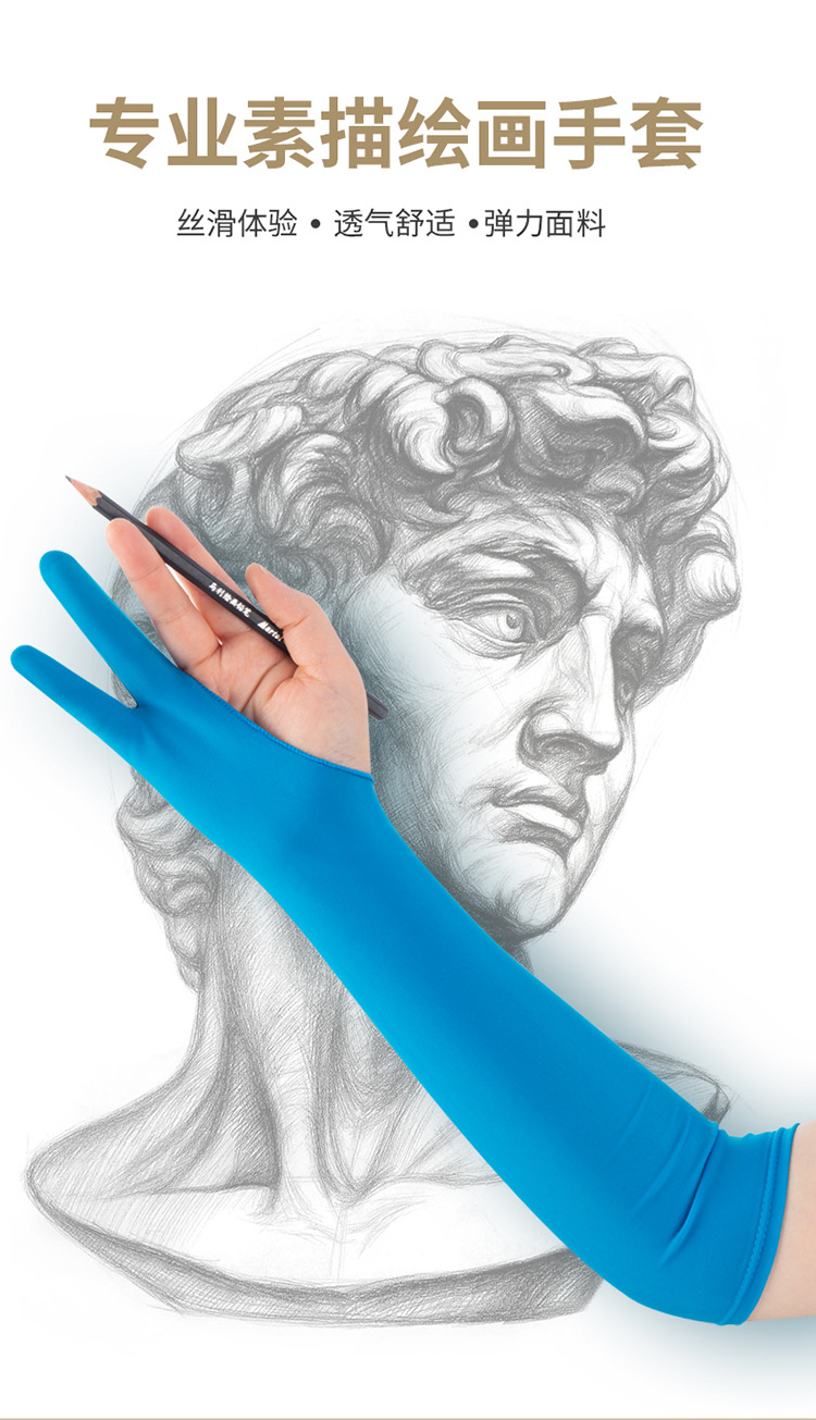绘画手套加长素描绘图长手套防污画画二指手套长二指手套透气画画