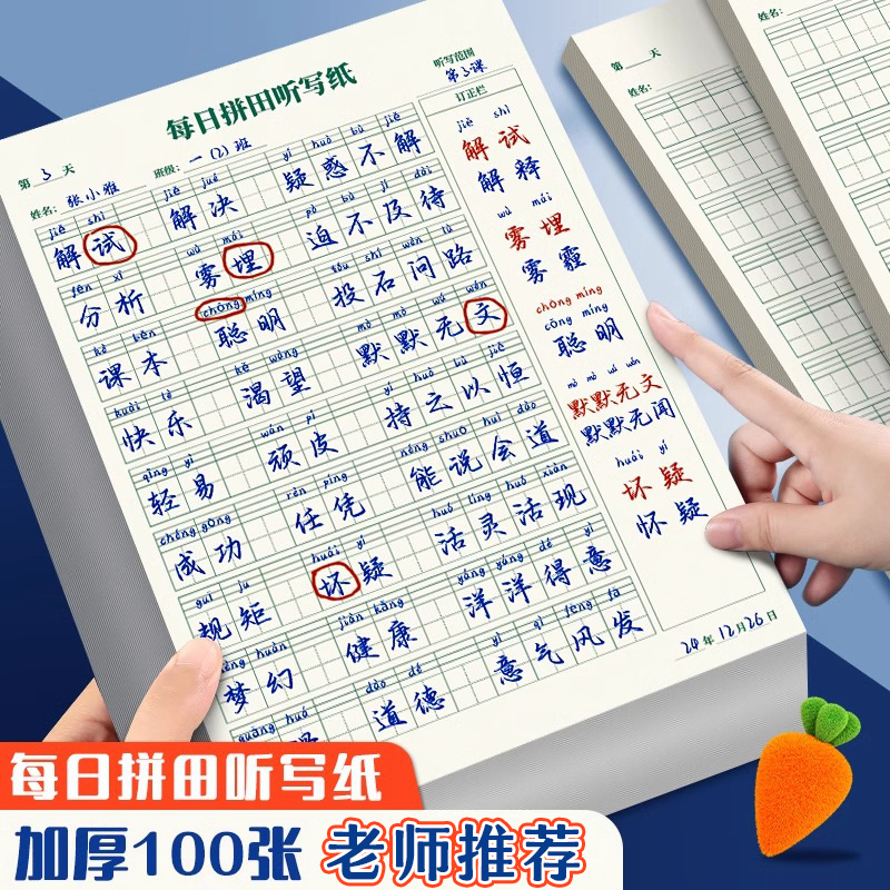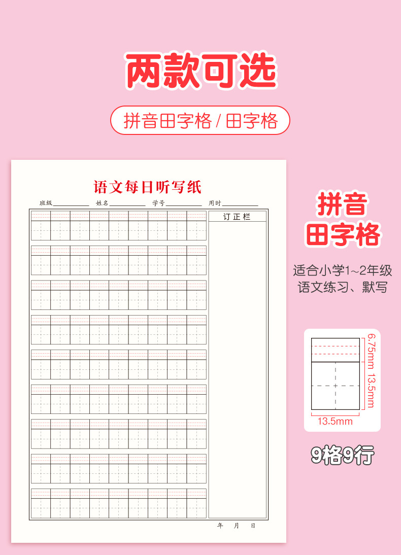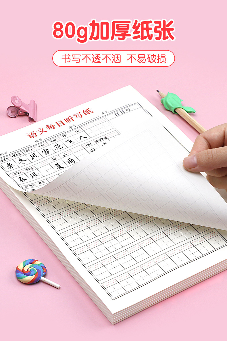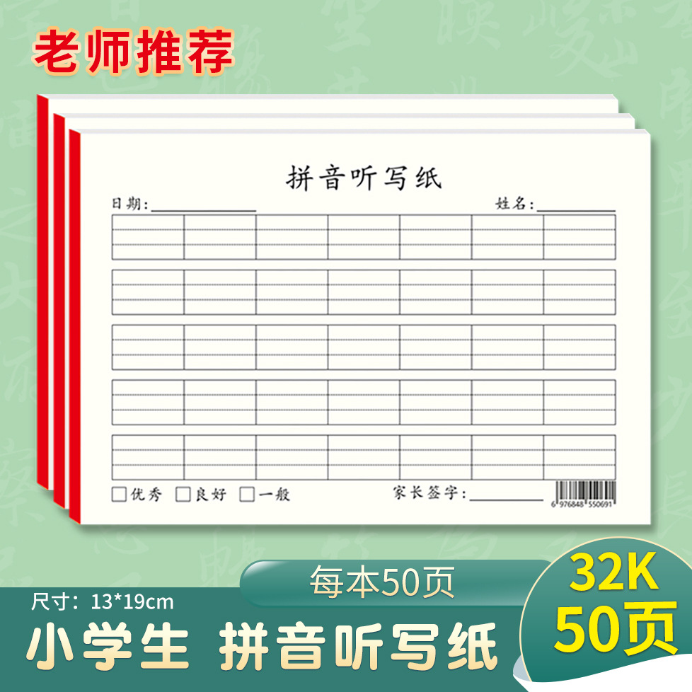 32K 小学生ピンインディクテーション用紙教室練習ディクテーションワークシート毎日のチェックインピンイン練習帳