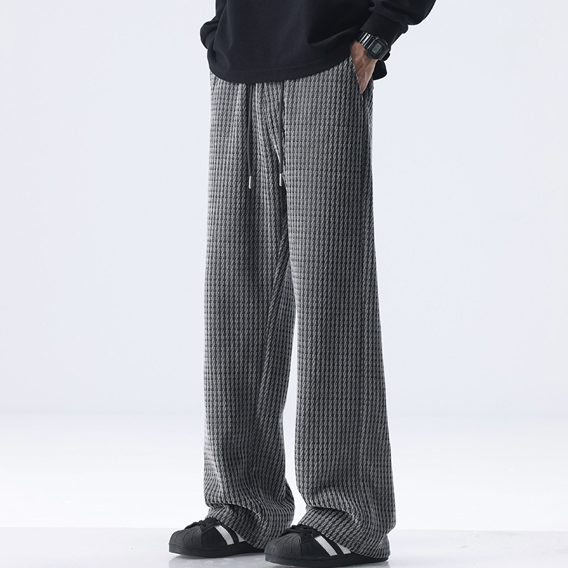 K743|大码男装秋季新品菱形格纹休闲裤男宽松百搭阔腿直筒长裤