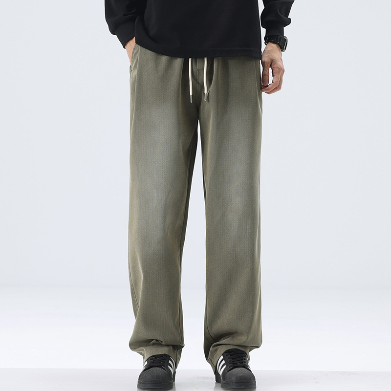 K742|大码男装秋季新品复古洗水休闲裤宽松潮牌百搭阔腿直筒长裤