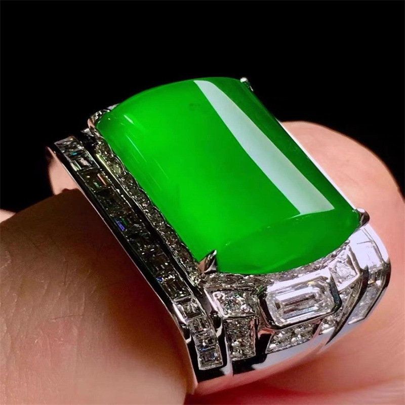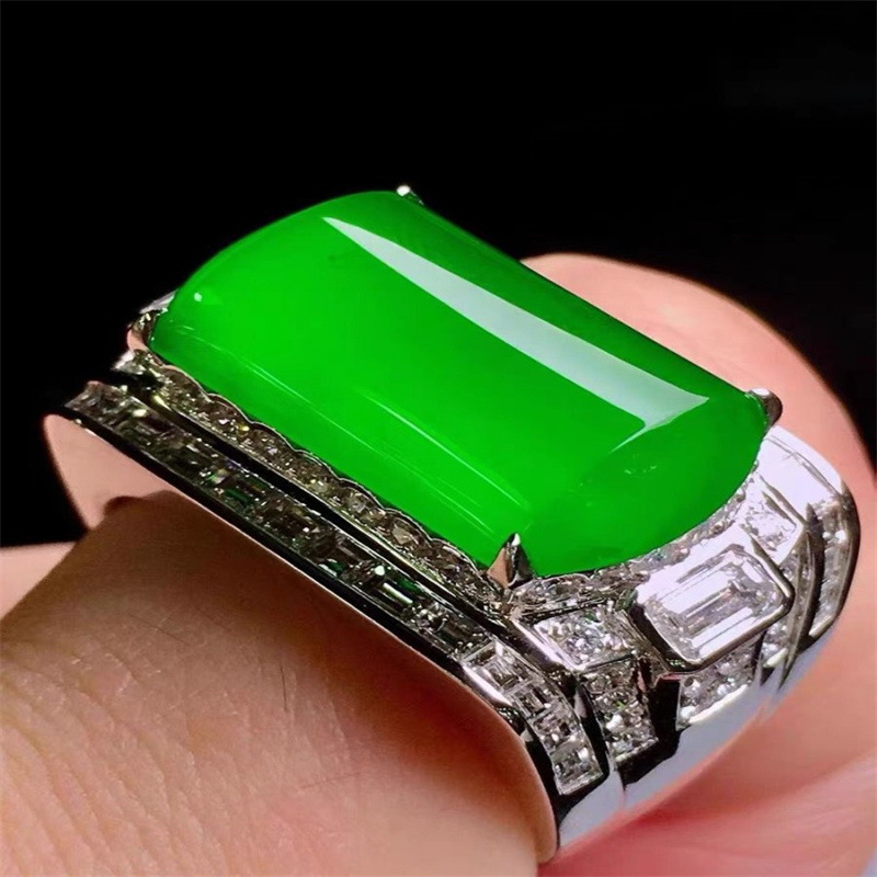 天然A品翡翠陽緑鞍戒氷種玉石指輪S925銀ファッション指輪男女金調節可能