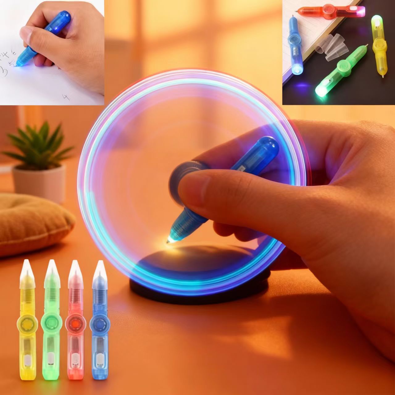 解压发光陀螺笔指尖转转笔圆珠笔儿童玩具七彩旋转笔解压手指陀螺