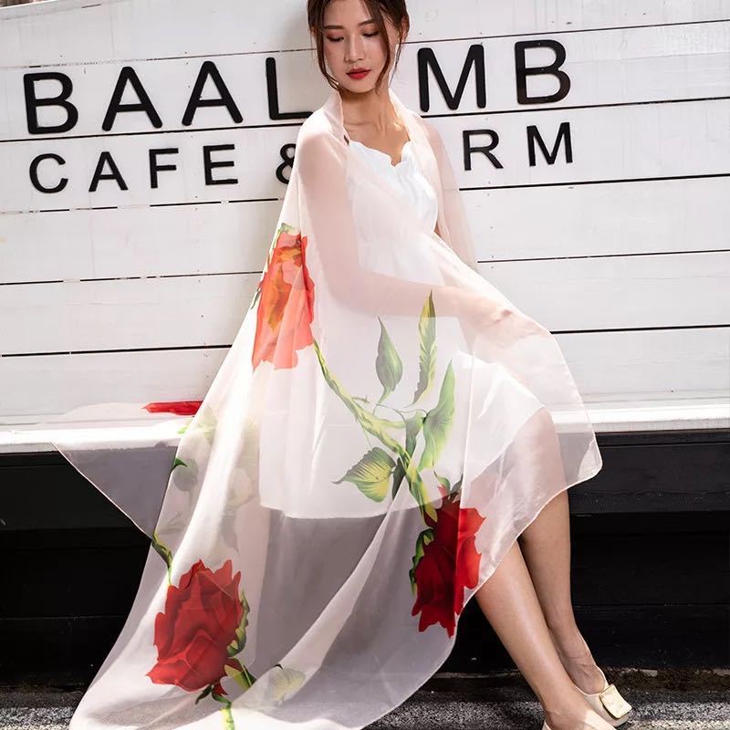 シルクタオルの女性の長いタイプのシフォンは日焼け止めビーチタオルの夏の薄いタイプのプリントのショールのスカーフの両用旅行のマフラーを合わせます。