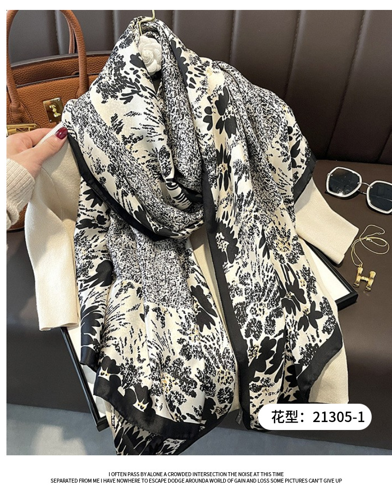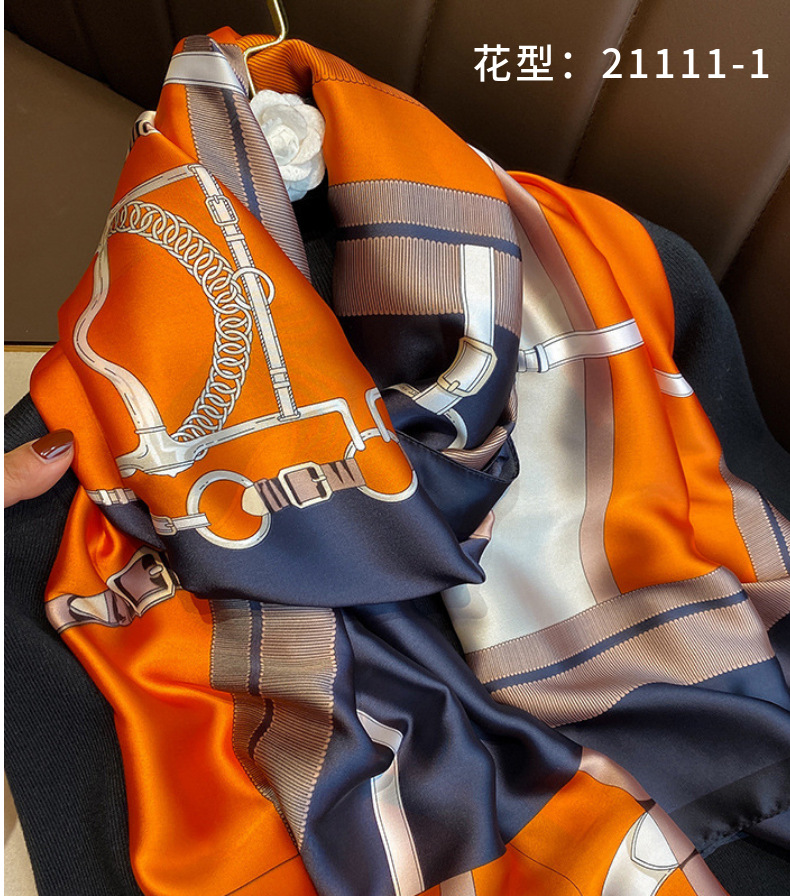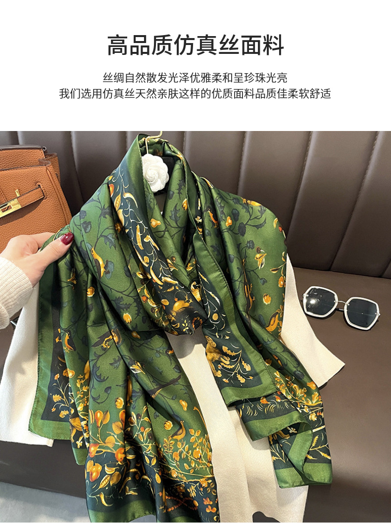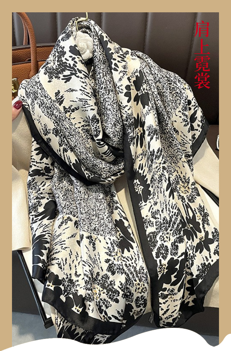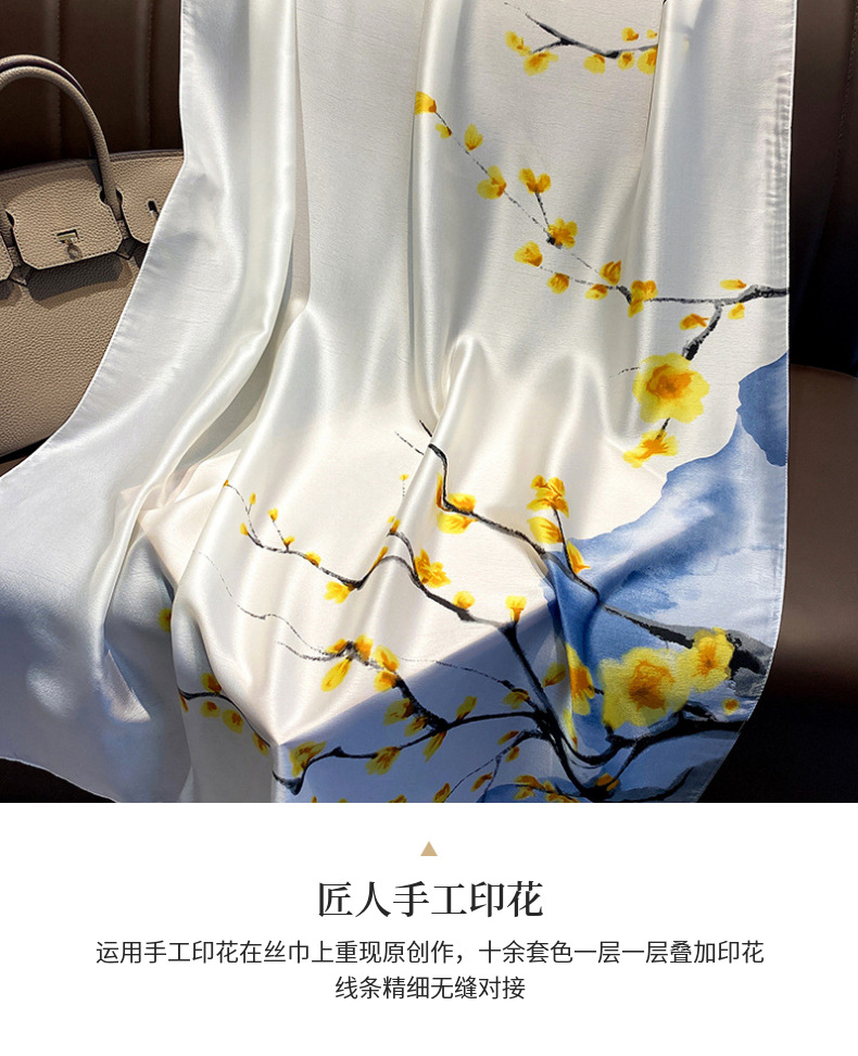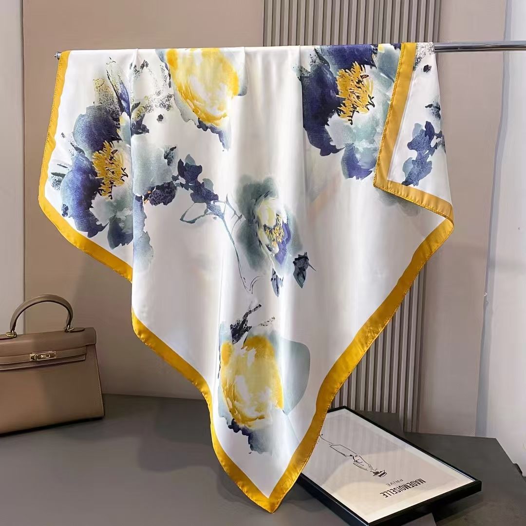 70シルクタオルの高級感韓系ファッション百合職業シミュレーションシルクタオルのレトロなプリントシルクタオルの女性