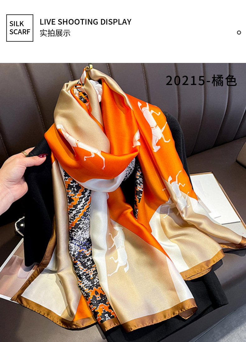 2025年新作 夏用シルクスカーフ レディース リジンサテンプリント ロング丈 薄手 ショール オーバーサイズ スカーフ ビーチタオル