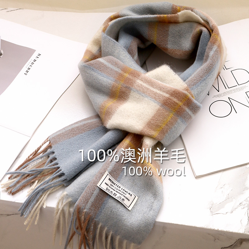 エリートイギリス100% ウール格子マフラー女性冬学生百合男保温カップルマフラー誕生日プレゼント