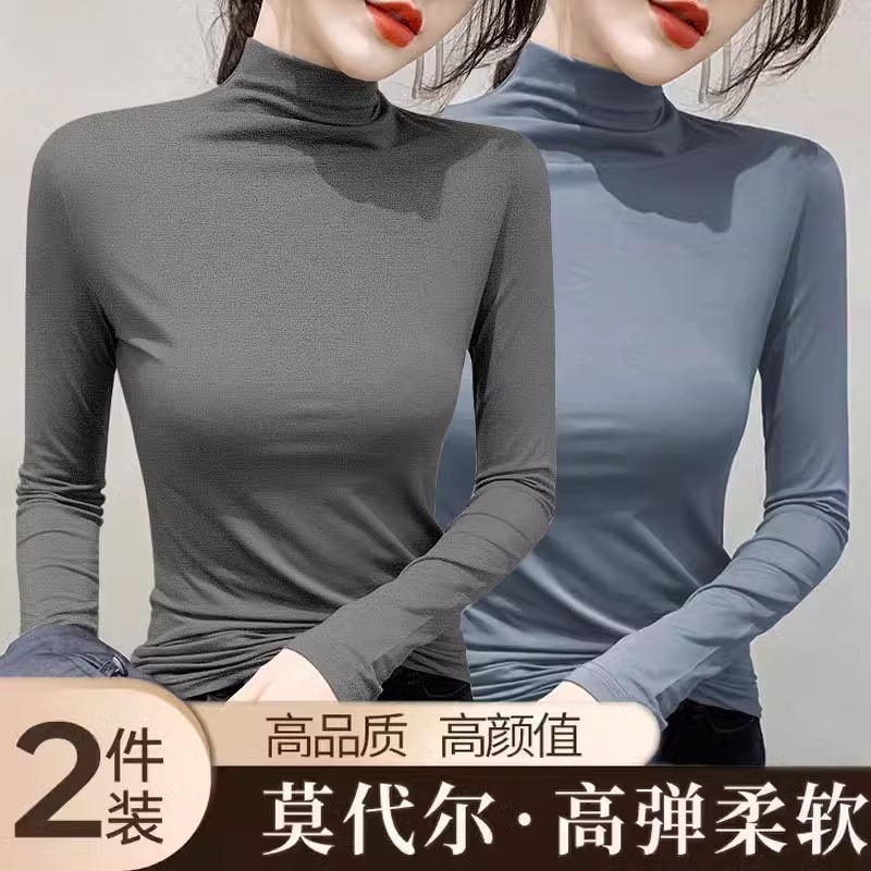 女性用ハーフタートルネックボトリングシャツ 2025 新しい女性のモーダル長袖 Tシャツ暖かいインナーベルベット厚みのあるトップ