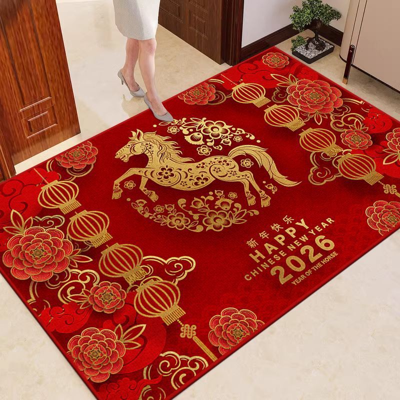 红色入户门地垫马年新款新年进门脚垫子2026家用喜庆布置门垫代发