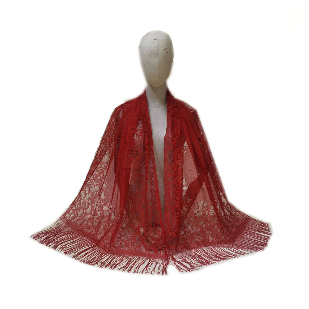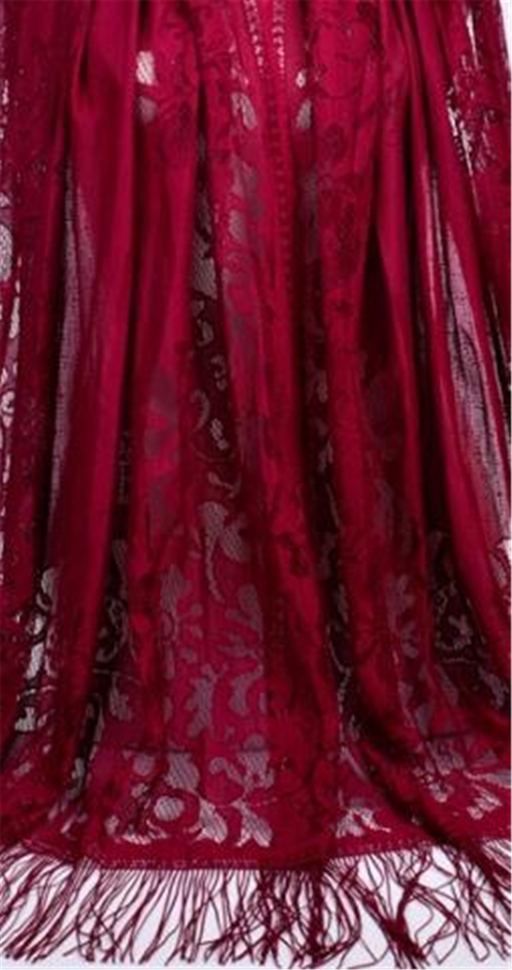 ヨーロッパとアメリカのイスラム教徒スカーフヒジャブカラーレース中空タッセルシルクスカーフ女性の夏の女性のロングガーゼスカーフショール