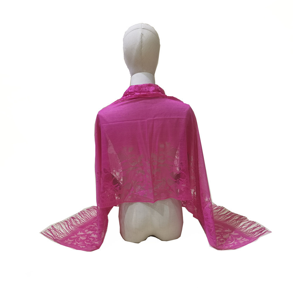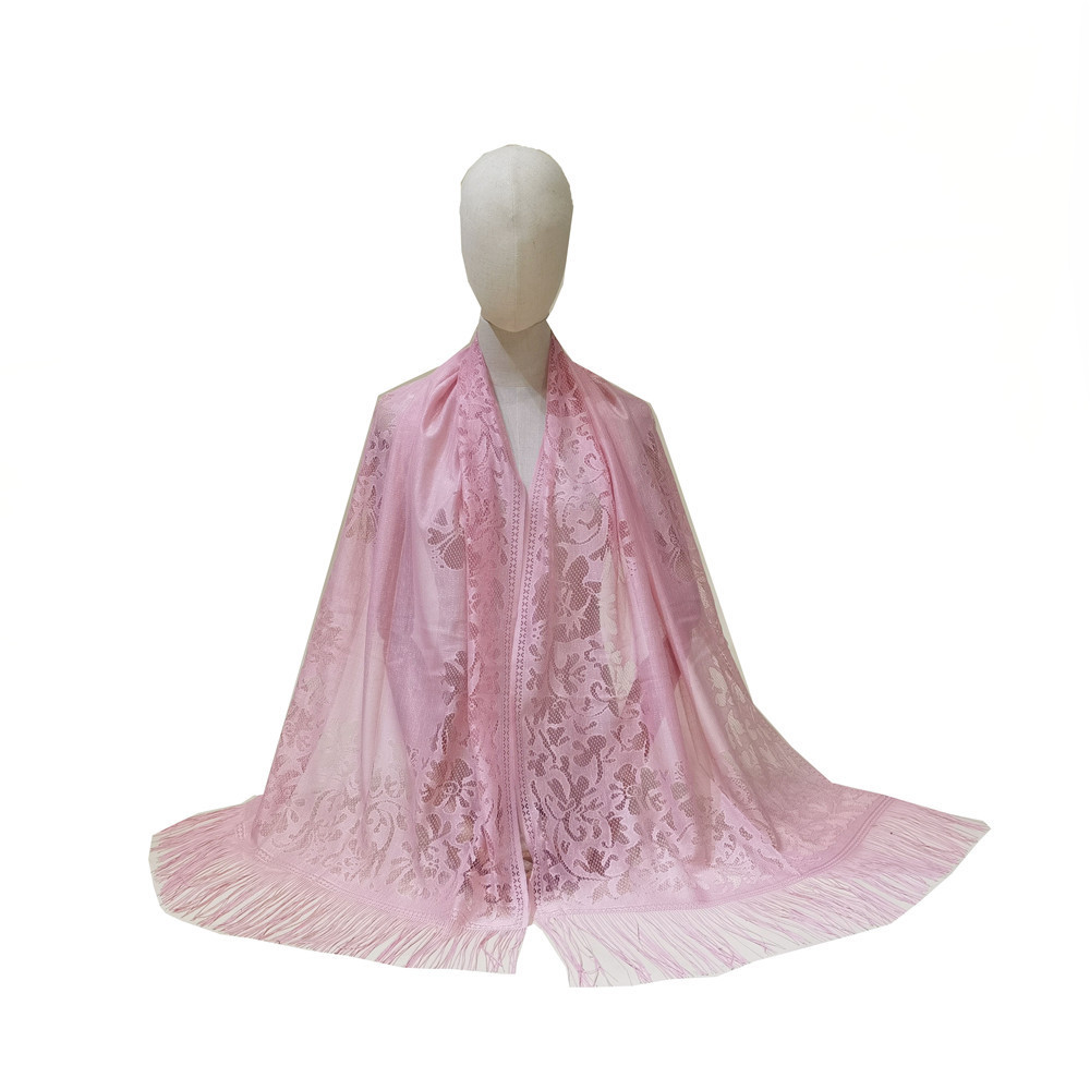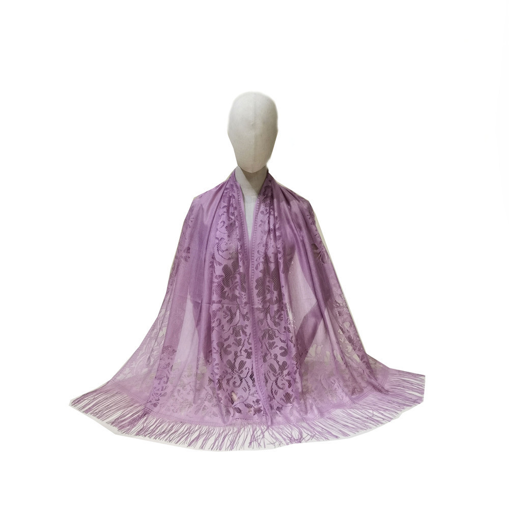 夏のマレーシアの長いタイプのスカーフのショールのムスリムのマフラーの頭の純色のレースの透かし彫りのフリンジタオルの女性