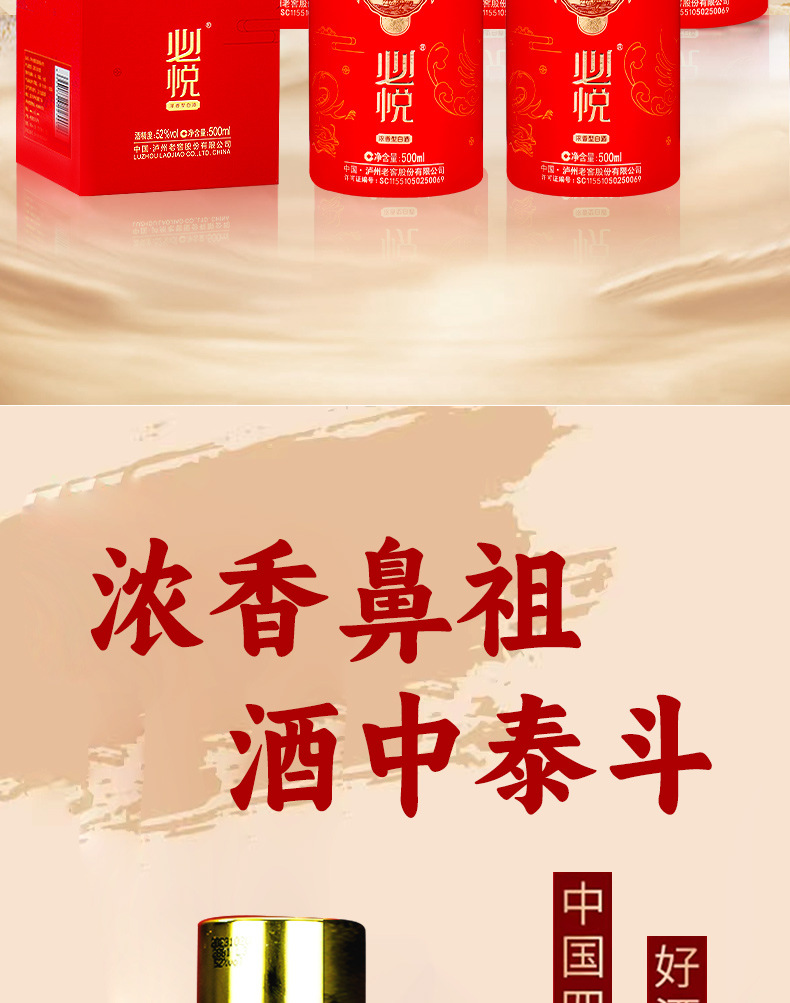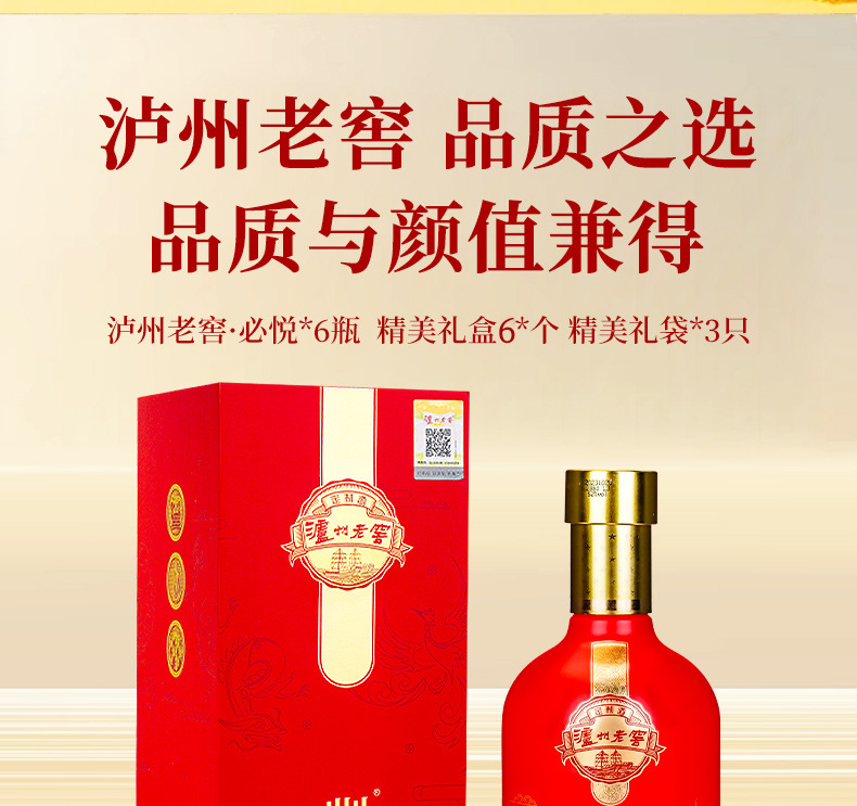 蘆州酒老窖必悦52度浓香型白酒純粋穀物酒全箱結婚式宴会ギフト用酒卸売
