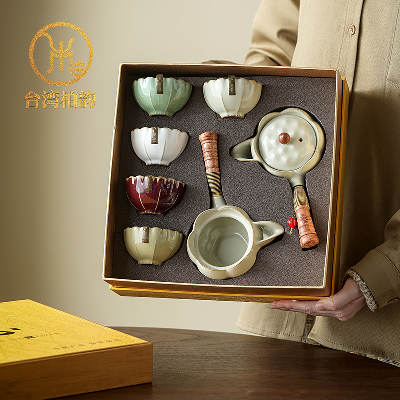 台湾柏彩釉汝窯茶器セット家庭用中国式高級汝窯泡急須大師級セット茶器