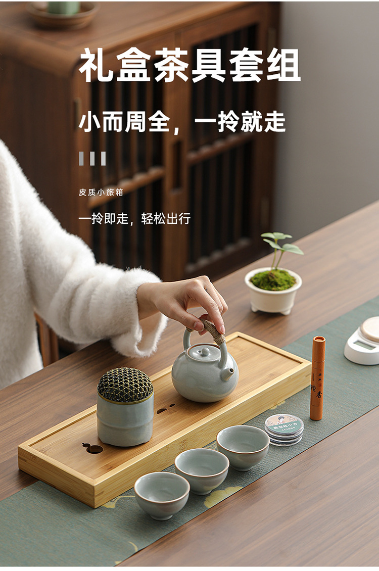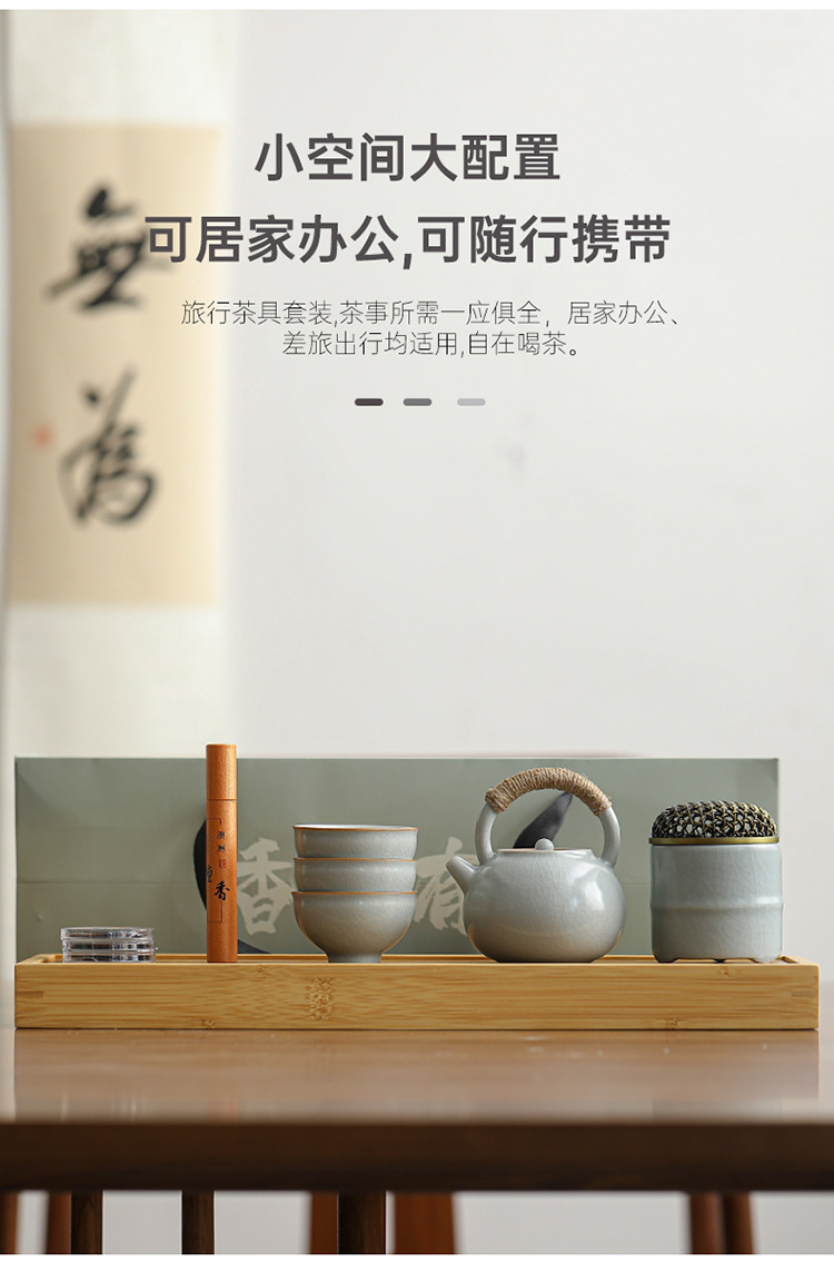 汝窯快客杯一壺二杯旅行茶器セット屋外キャンプ泡茶携帯用工夫茶器セット
