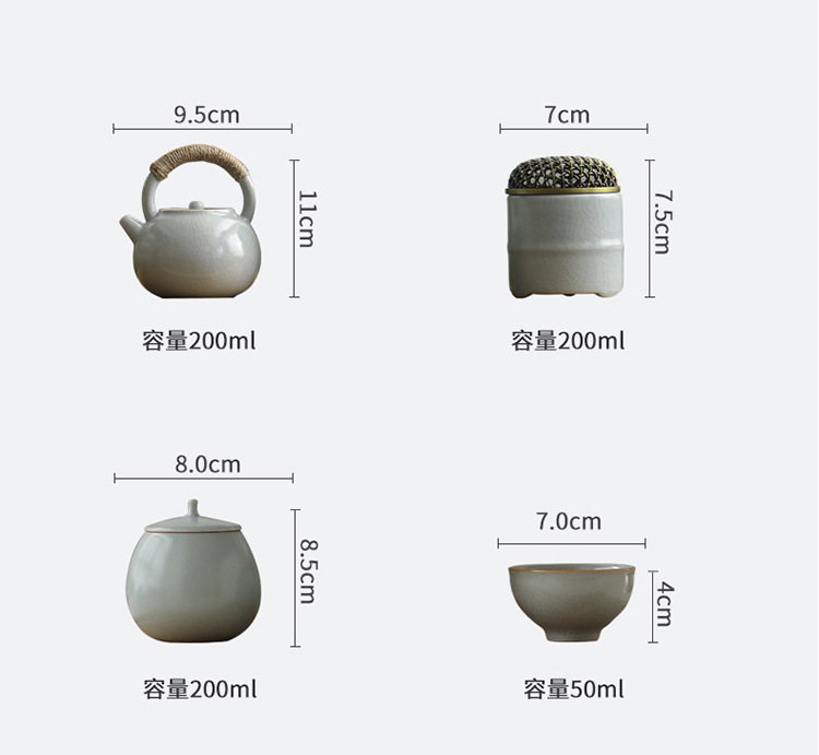 柏韻五大名窯茶器セット汝窯泡ティーポット陶磁器氷割れ西施壺黄汝カンフー茶器