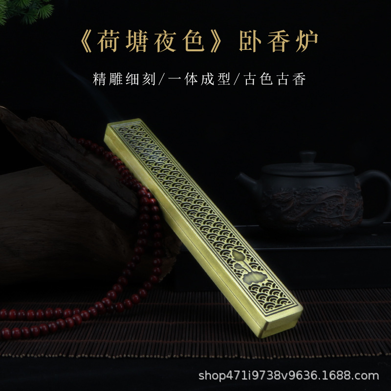 全銅線香箱臥香炉香薫炉香挿香座家庭用室内檀香炉沈香薫香炉置物
