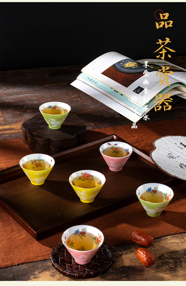 青描金小茶杯家庭用シングル主人杯創造的個性工夫茶品茗六杯ギフトボックスプレゼント
