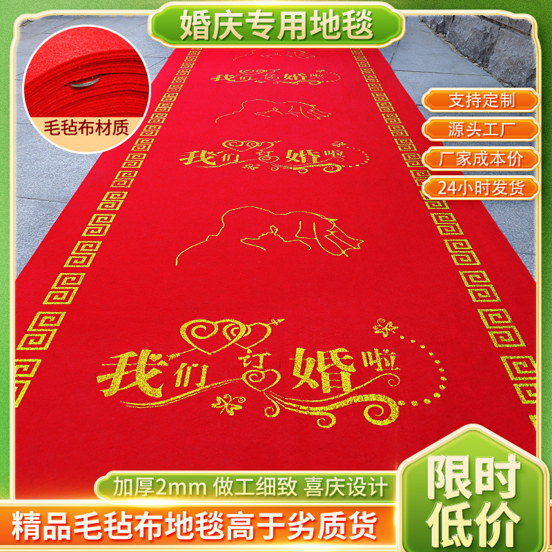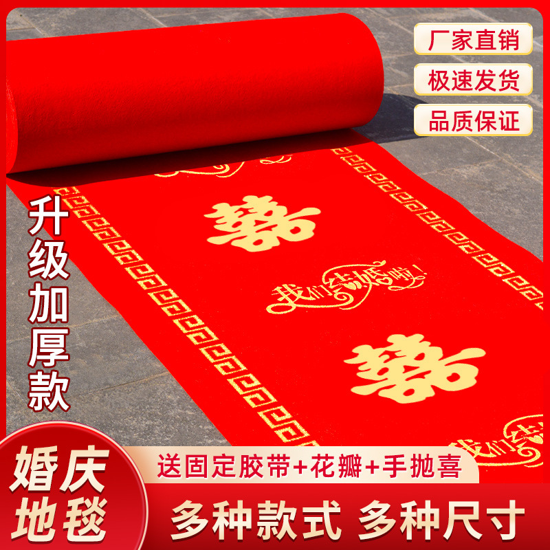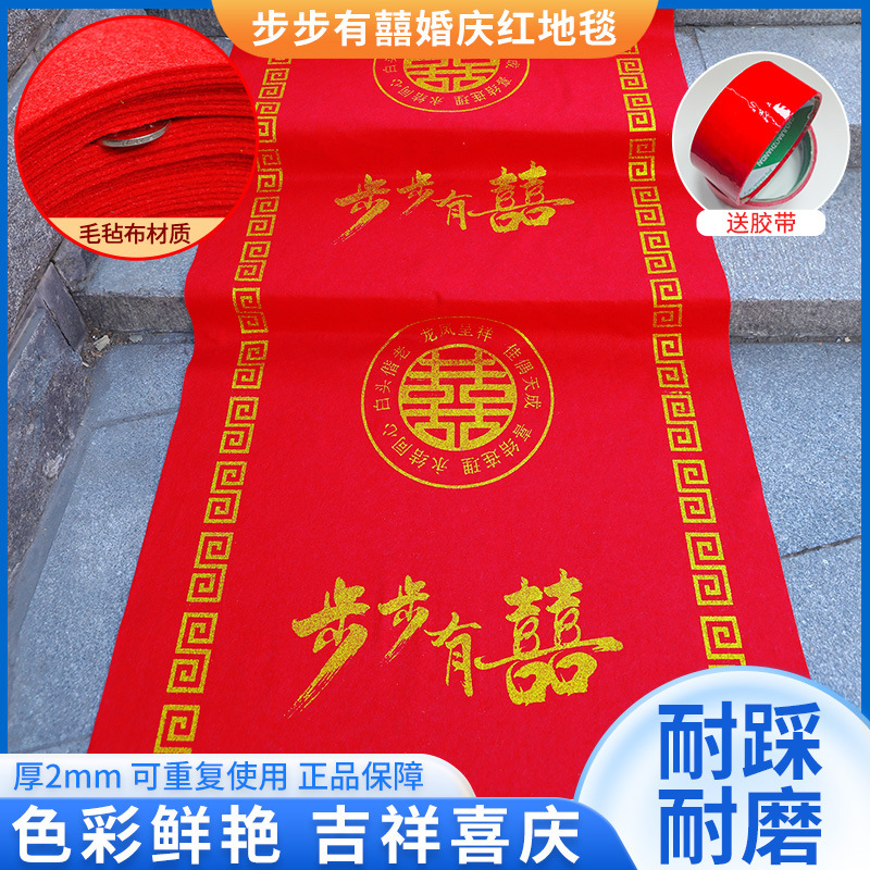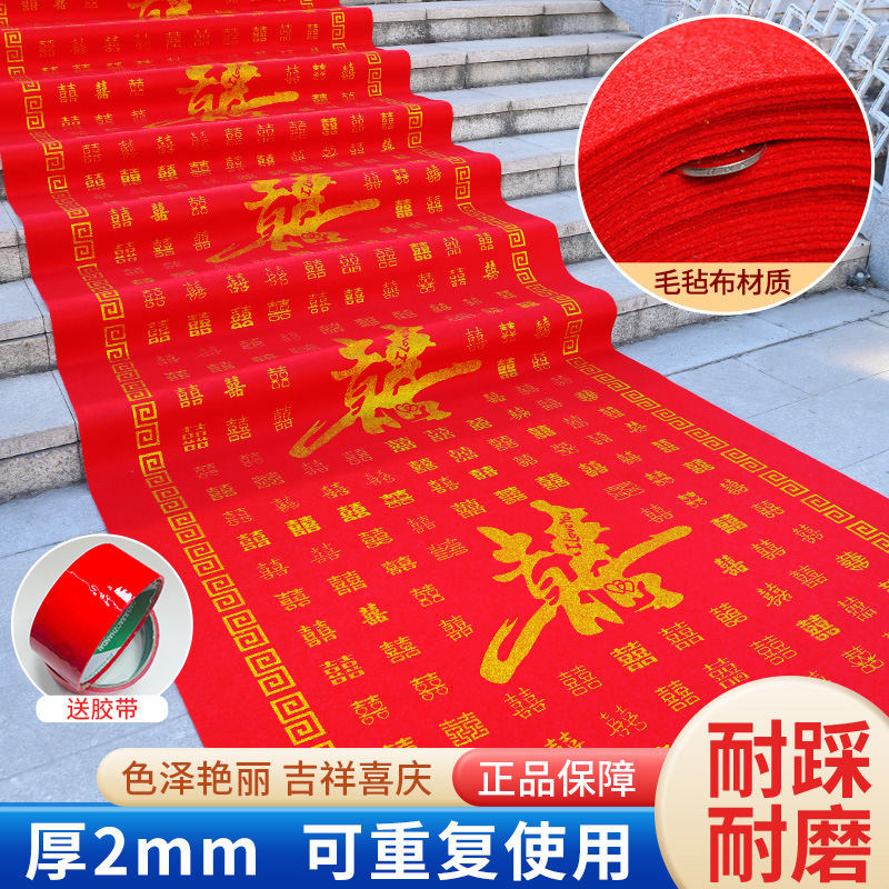 结婚红地毯一次性加厚无纺布毛毡布喜字婚庆红色耐磨楼梯农村地毯