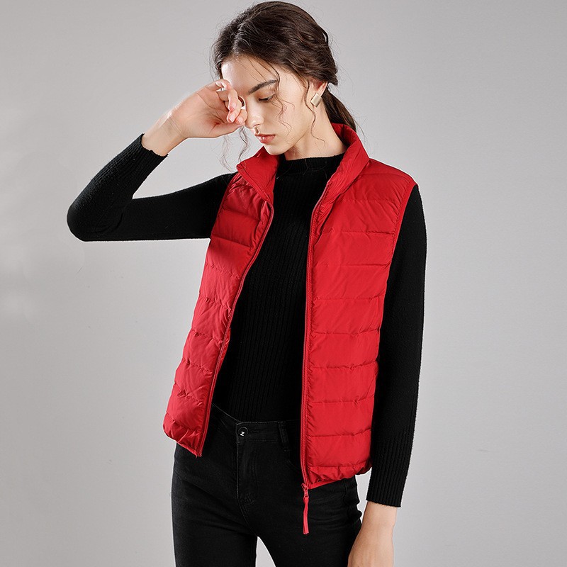 秋冬の新型の薄いダウンジャケットの女性の内胆の馬甲の短いタイプの丸首の中で襟のない軽くて底の純色のベストを着ます。