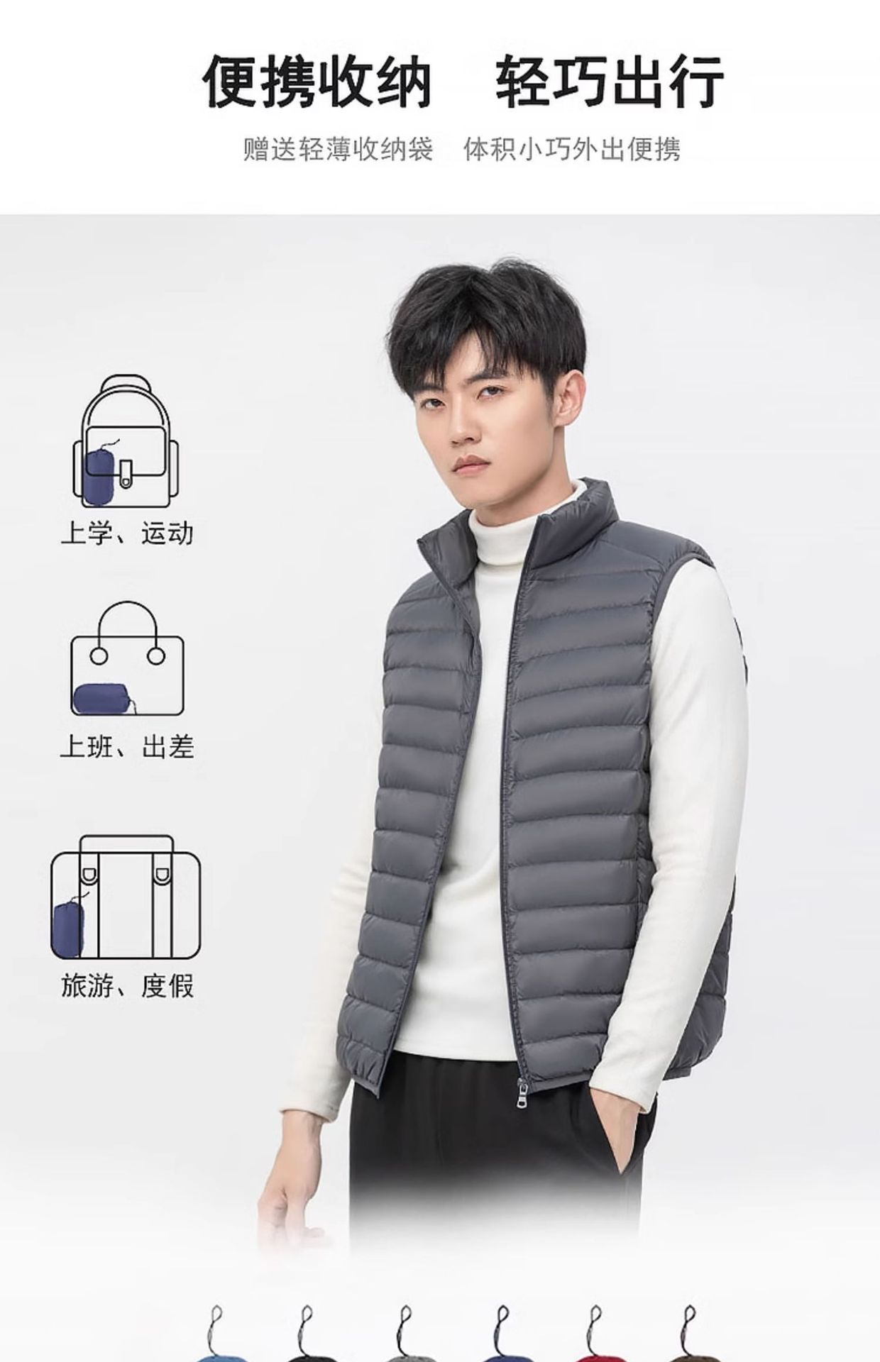 轻薄款羽绒服男士90绒秋冬新款休闲百搭轻便立领压胶保暖背心外套