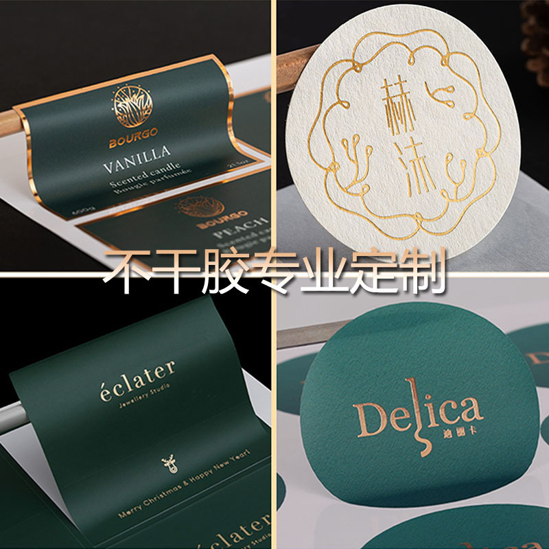 粘着ラベルステッカー、ロゴ・QRコード入り、コート紙シール、PVC透明箔押しラベル、偽造防止