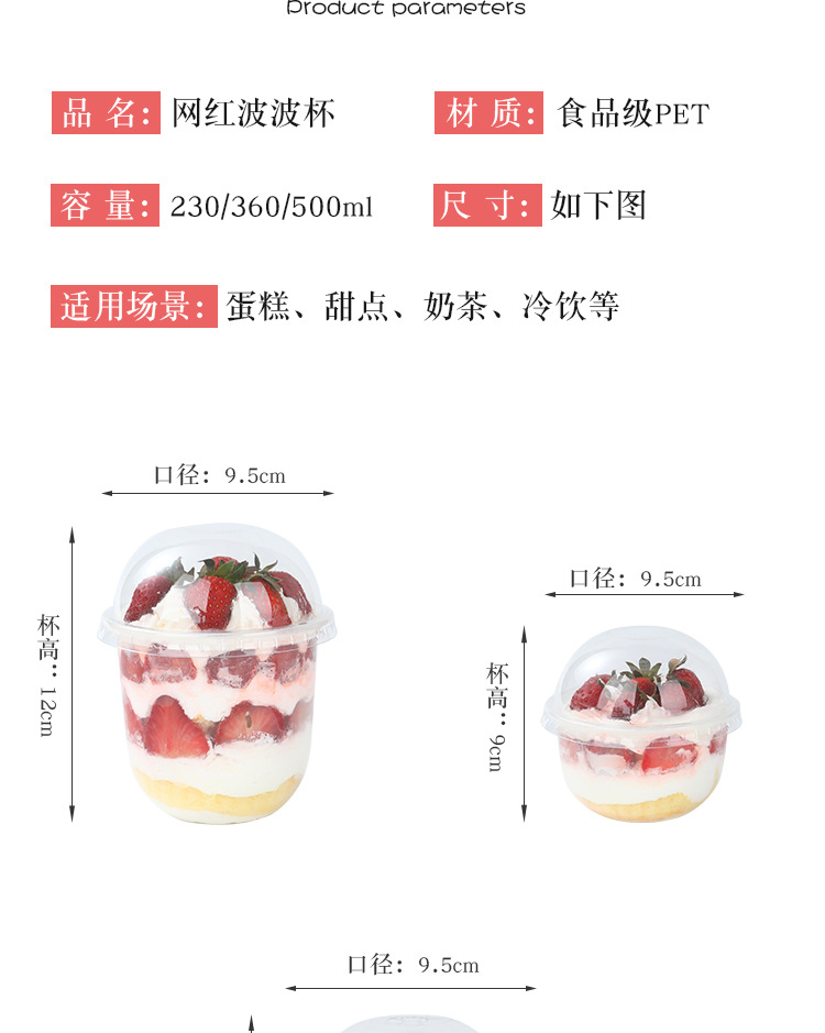 U型波ケーキカップ使い捨て透明カップ千層ムースケーキ太ったカップ95口径木糠カップ